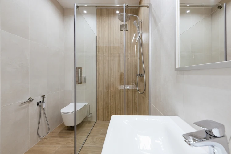 Bad in Hellgrau mit Holz-Akzenten: Stilvolle Gestaltungsideen für kleine und große Räume