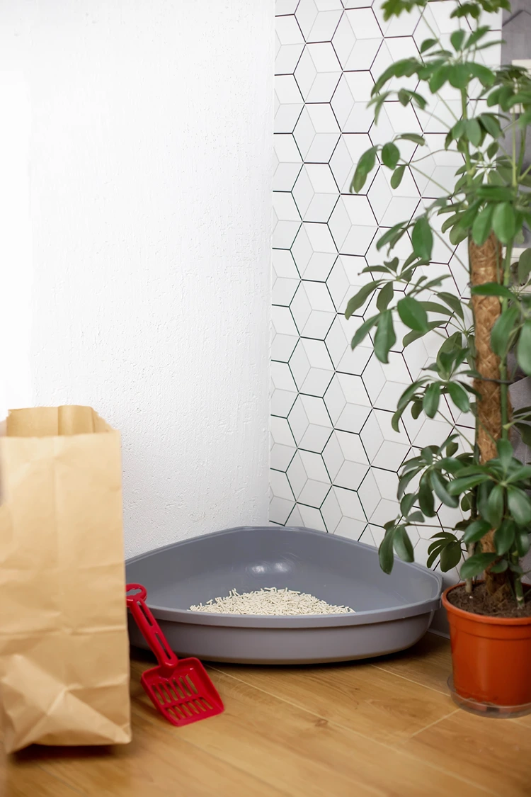 Ein gut geeigneter Platz ist auch eine Nische oder ein Bereich hinter einem Vorhang, einer Pflanze oder in einer Kommode versteckt. So steht das Klo nicht direkt im Sichtfeld, und die Katze hat dennoch Ruhe.