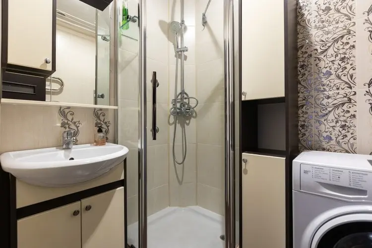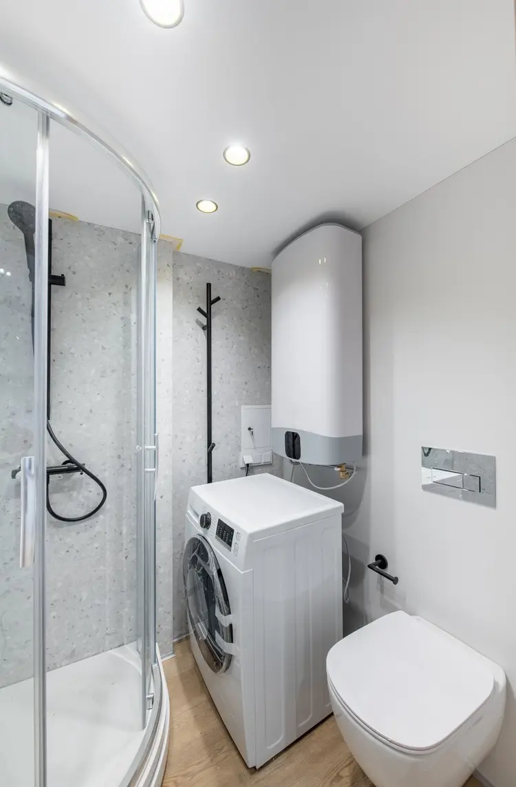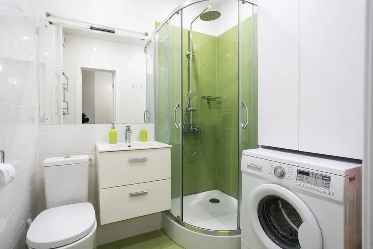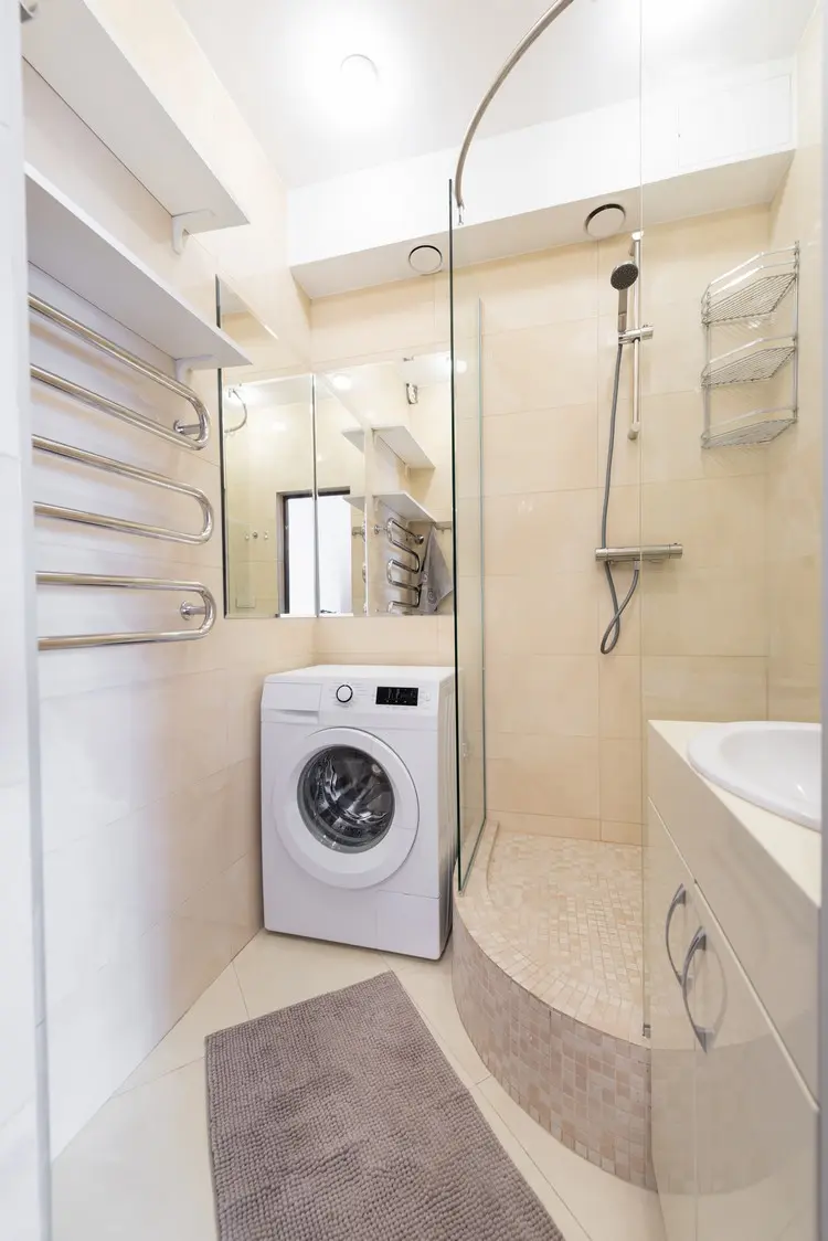 Wie Sie den Bereich mit Waschmaschine neben der Dusche gestalten können
