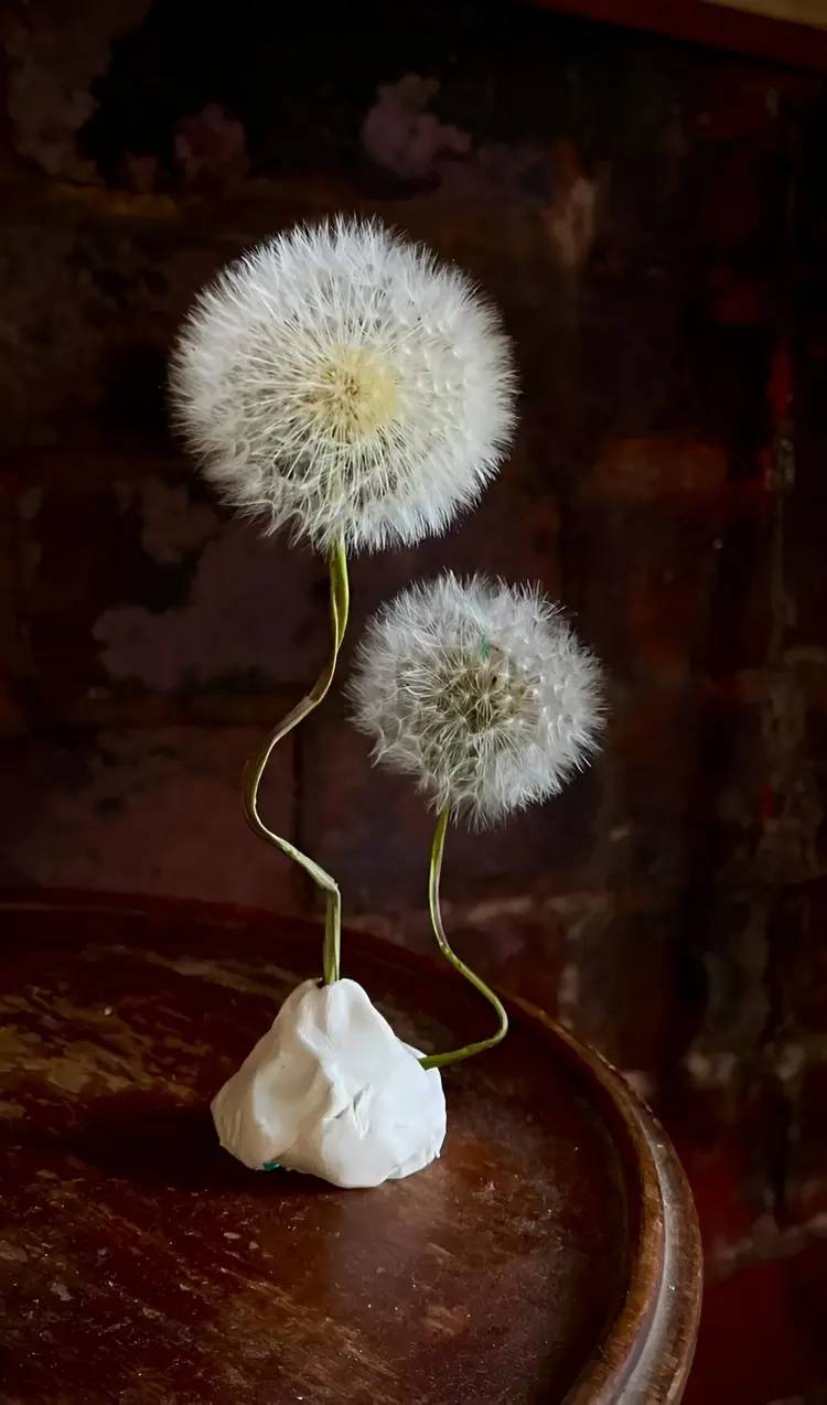 - Stecken Sie die Blüten mitsamt Draht in Styropor, Steckschaum oder in ein anderes geeignetes Material. Einzelne Pusteblumen können Sie auch in ein Glas stellen. Lassen Sie die Blüten nun einige Tage stehen, damit sie aufgehen können.