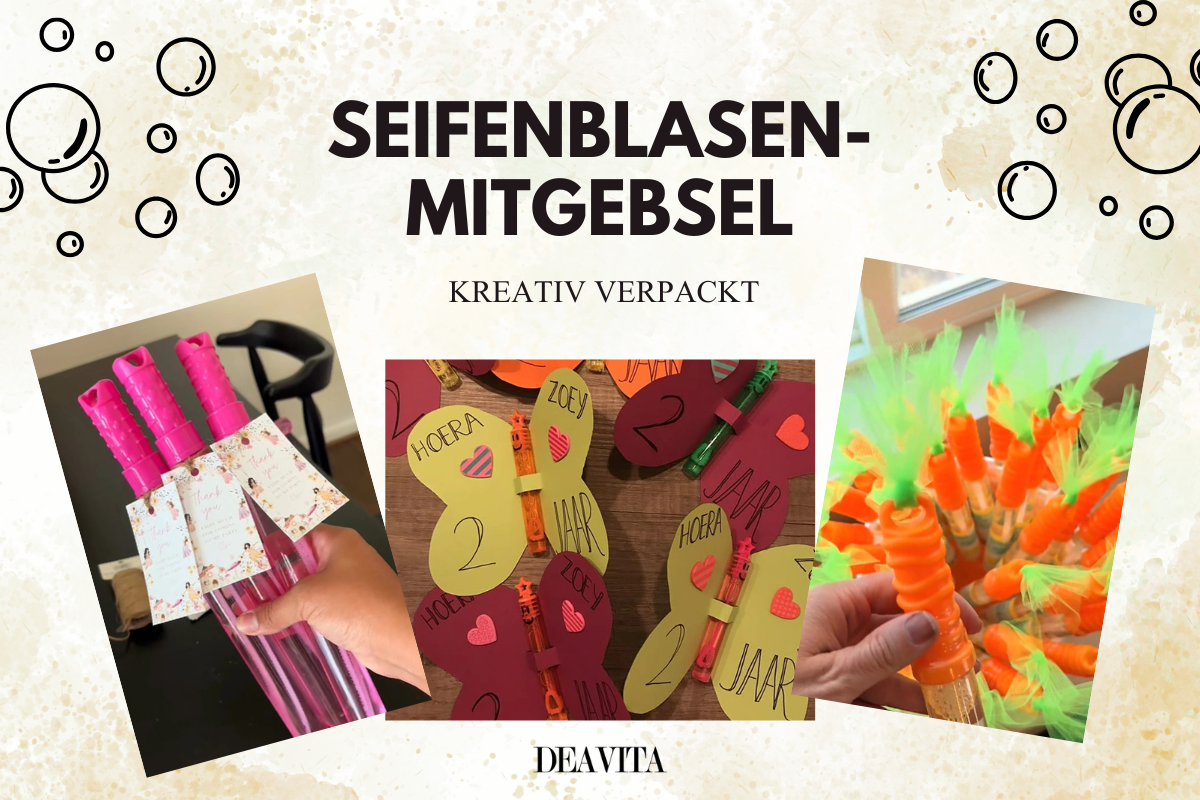 Entdecken Sie 3 kreative DIY-Ideen, wie Sie Seifenblasen originell als Mitgebsel für Kindergeburtstage verpacken können.