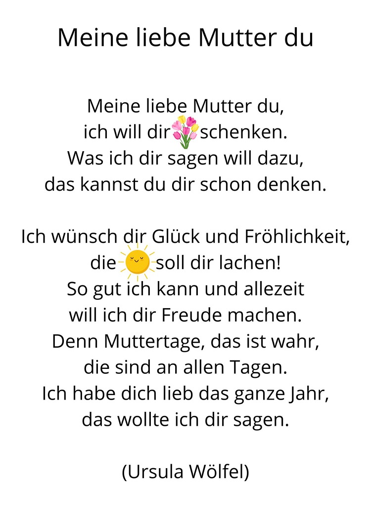 Der Muttertag ist ein Fest voller Liebe, Nähe und Dankbarkeit – und für Kinder im Kindergarten eine schöne Gelegenheit, ihrer Mama auf ganz besondere Weise „Danke“ zu sagen. Was könnte liebevoller sein als ein kleines Gedicht, das mit Herz vorgetragen wird?