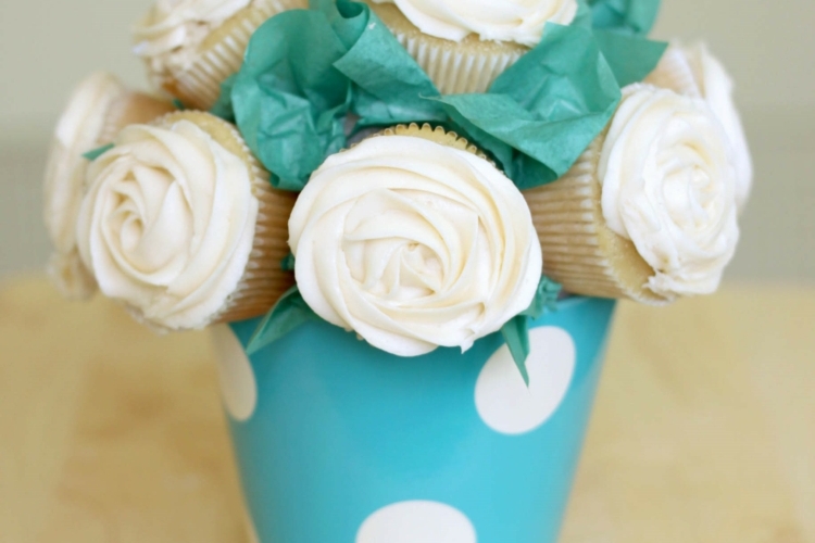 Natürlich können Sie bei gewisser Zeitmangel auch fertige Cupcakes aus der Konditorei um die Ecke kaufen, aber mit selber gebackenen zaubern Sie das größte Lächeln auf das Gesicht Ihrer Mutter oder Oma. Für das Projekt benötigen Sie einen Blumentopf in Pastelltönen und Styroporkugel mit entsprechender Größe. Geben Sie jedem kleinen Törtchen die Gestalt einer Rose mittels einem Spritzbeutel mit Sterntülle, gefüllt mit Süßcreme. Die fertigen ‚Rosen‘ befestigen Sie mit 2-3 Zahnstochern an die Styroporkugel.