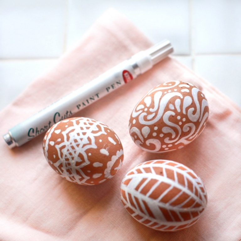 Mit einem Malstift können Sie die Ostereier liebevoll dekorieren – damit können Sie zum Beispiel auf die bereits gefärbten Ostereier Gesichter zeichnen. Diese Variante ist ziemlich einfach und selbst für Bastel-Anfänger gut geeignet – im Unterschied dazu müssen Sie über gewissen Geschick verfügen, wenn Sie mit Pinsel malen möchten.