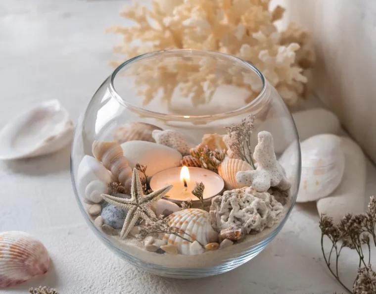 So schaffen Sie Urlaubsflair zu Hause: Sommerliche Muscheldeko in Glasschale
