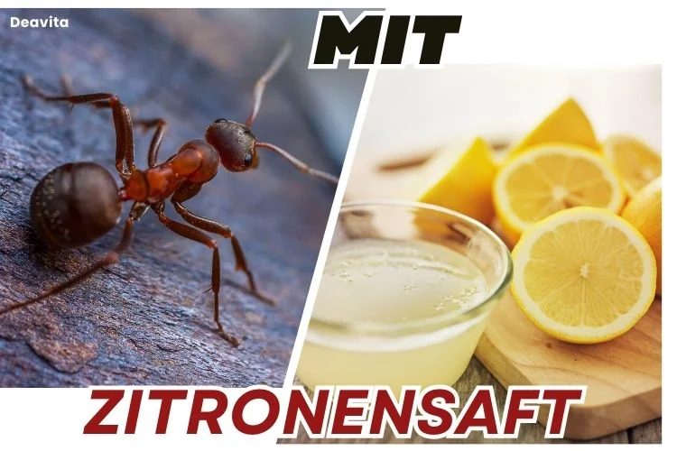 Wenn Sie kein Nest finden können, dann können Sie trotzdem die Ameisen mit Zitronensaft vertreiben. Besprühen Sie damit die Ameisenstraße. Halbieren Sie eine Zitrone und legen Sie die eine Hälfte auf den Eintrittspunkt (Ritze, Ecken, vor dem Balkongeländer). Verreiben Sie die Blumentöpfe mit der anderen Hälfte, um die Pflanzen vor den Insekten zu schützen.