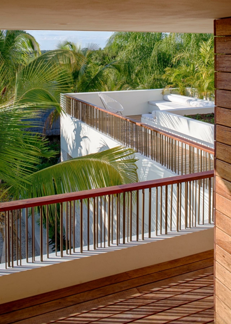 Eine Variante aus Holz und mit Spalten sehen Sie hier. Ein solches Geländer als Verkleidung lässt sich auch prima aus Paletten bauen, was natürlich eine sehr kostengünstige Alternative zum Geländer ist. Bauen Sie es jedoch selbst, dann ziehen Sie Öffnungen in Erwägung, in die Sie Blumenkästen stellen können, um den Balkon auf besondere Weise und für jede Jahreszeit zu gestalten.