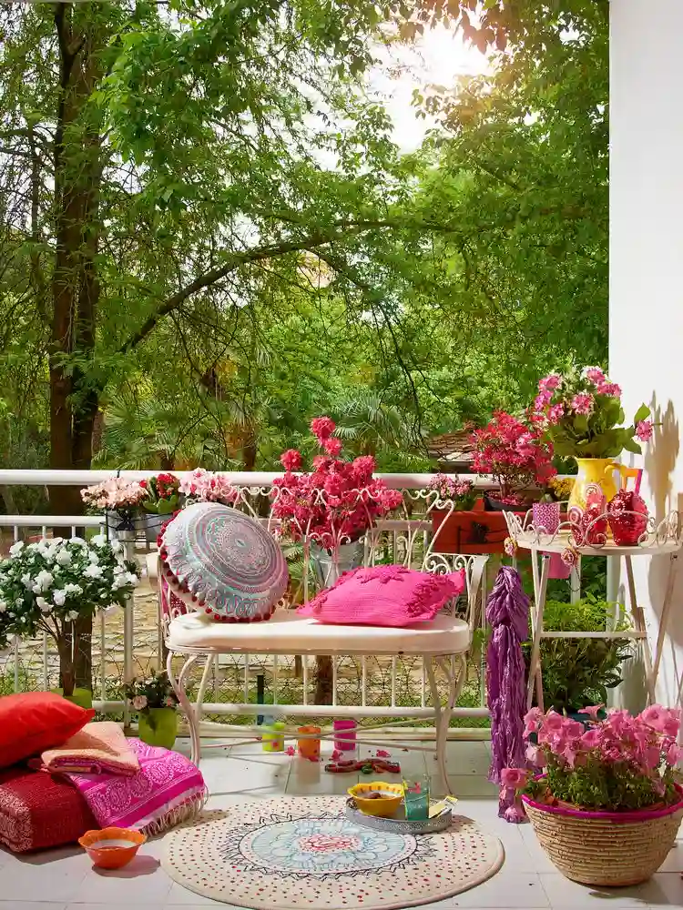 Die Verschönerung eines Balkons mit einem Outdoor-Teppich ist so einfach – das Hinzufügen von Farben und Mustern kann den Raum auf die nächste Stufe heben. Achten Sie darauf, dass Sie ein Material wählen, das speziell für den Außenbereich geeignet ist. So lässt sich das Aussehen Ihres kompakten Balkonbereichs leicht erhalten, denn Sie können ihn bei Verschmutzung mit einer sanften Reinigungslösung abwaschen.