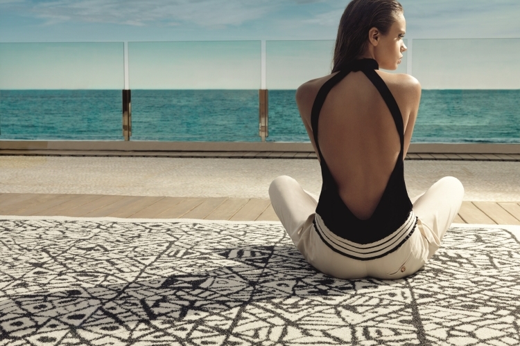 Ein runder Teppich im Innen- oder Außenbereich wird sicherlich die Aufmerksamkeit an sich ziehen. „Marquis“ zeichnet sich mit symmetrischem, schwarz-weißem Muster, das Mandala sehr ähnlich ist. Er bietet sich in runder und ovaler Ausführung, sowie mit Zusatz von noch einer Farbe – Grau oder Blau.