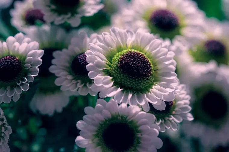 ‚Chrissy‘ – Hellrosa mit grüner Mitte; Kamillenähnlich