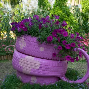 Entdecken Sie kreative und nachhaltige Dekoideen für Ihr Blumenbeet: Bunte Autoreifen, blühende Gummistiefel, verspielte Fahrräder und vieles mehr.