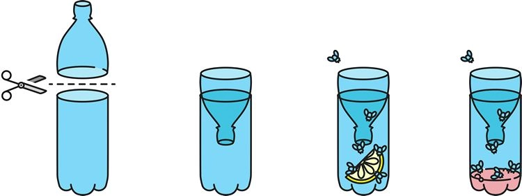 Selbstgemachte Fliegenfalle mit Plastikflasche und Hausmitteln