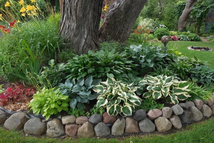 Die Funkien sind schattenverträgliche Pflanzen. Es gibt eine große Auswahl an Sorten, die gut mit dem trockenen Boden und der Wurzelkonkurrenz zurechtkommen. Allerdings braucht die Staude zumindest am Anfang viel Pflege. Die Nadelbäume haben sehr viele Wurzeln, die dem Boden alle Nährstoffe und Wasser entziehen. Daher sollten Sie den Bereich um die Wurzeln jeder Funkie täglich gießen. Bevor Sie den Bereich unter dem Baum bepflanzen, breiten Sie eine 15 cm dicke Schicht Erde aus, die Sie mit Dünger vermengen.