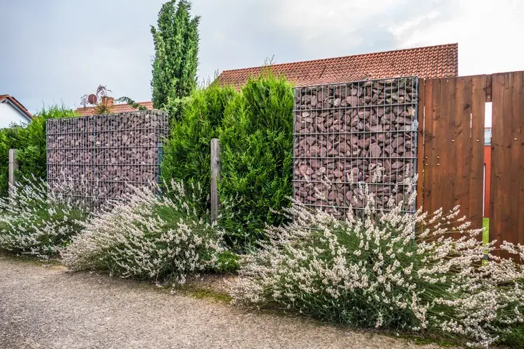 Gabionenzäune sind hierbei eine beliebte Wahl (können aber auch als niedrige Variante genutzt werden). Obwohl hierbei ein Korb mit Steinen gefüllt wird, wirkt diese Art von Vorgartenzaun nicht unbedingt klobig. Man kann ihn auch mit Paneelen abwechseln oder mit hängenden Blumentöpfen und -kästen kombinieren, um ihn etwas aufzulockern. Das ist dann von Vorteil, wenn das Grundstück eine längliche Form besitzt und ein langer Vorgartenzaun notwendig ist.