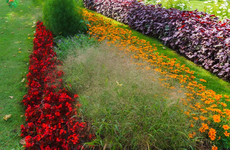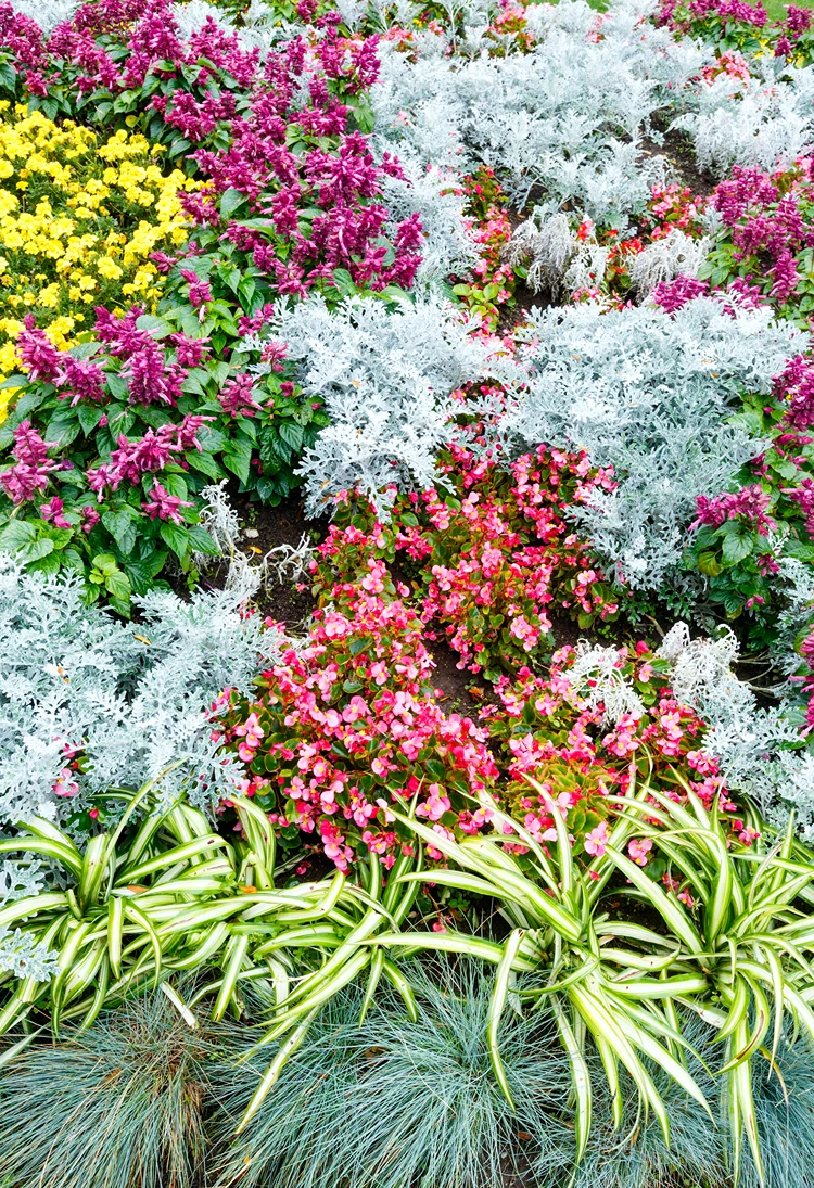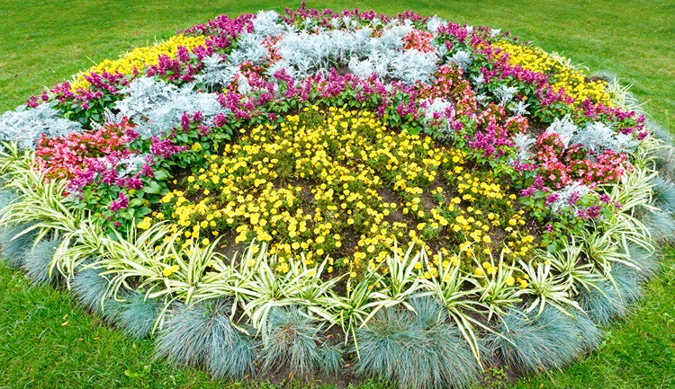 In städtischen Blumenbeeten oder Kurparks sieht man es häufig: Rundbeete bepflanzt mit farbenfrohen Wechselbepflanzungen mit Begonien, silberlaubigen Pflanzen und kontrastreichen Gräsern.