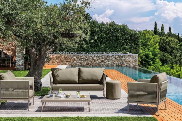 Die Designs von Atmosphera Italien versprechen höchsten Sitzkomfort für die ganze Familie. Die gemütlichen Tagesbetten mit weichen Sitzkissen und ergonomischer Rückenlehne bieten die Möglichkeit, am Poolrand mit einem Buch zu relaxen. Oben abgebildet – die Kollektion Twiga. Die Modelle ziehen die Blicke mit weichen Rundungen und klarer Formensprache auf sich. Angeboten in neutralen Farben, die stilvollen Sitzmöglichkeiten können mit kleinen Beistelltischen aus derselben Kollektion kombiniert werden.