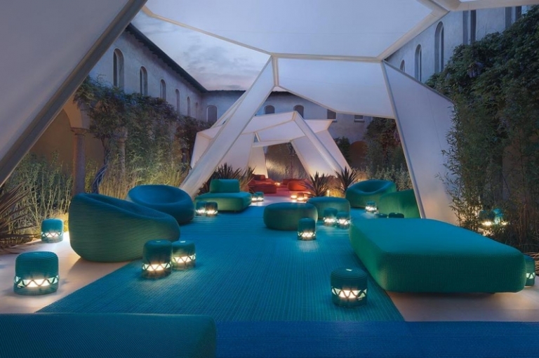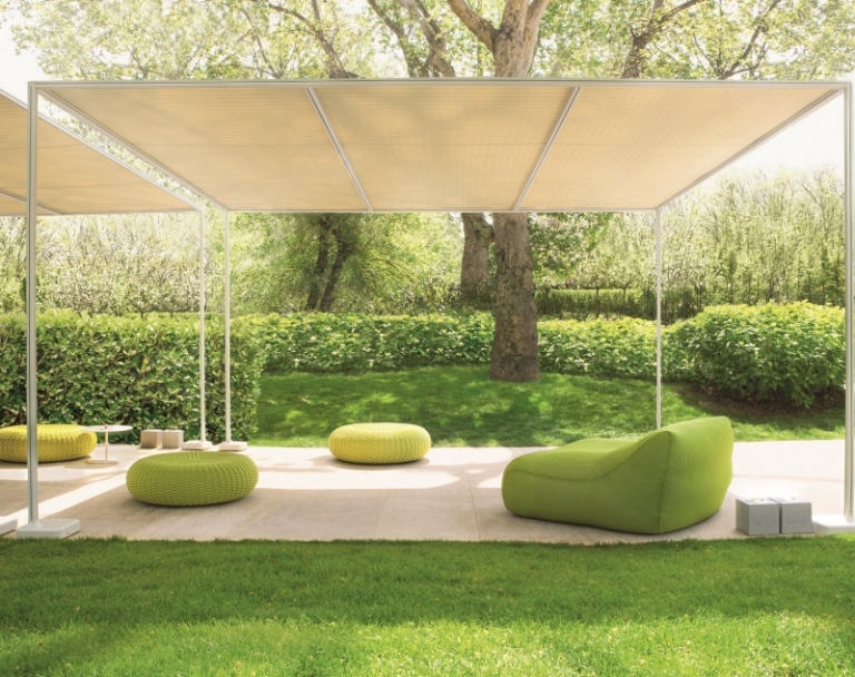 Bringen Sie einen exotischen Hauch aus dem Orient – mit einer entspannten Sitzecke unter dem Sonnensegel oder im Partyzelt. Belegen Sie die Terrasse mit einem Teppich und arrangieren Sie Sitzsäcke in Akzentfarben – mit Orange, Lila und Blau lässt sich eine fröhliche Atmosphäre kreieren. Auf dem Foto oben abgebildet – ein Design von Paola Lenti/. Die italienische Marke präsentiert attraktive Hocker und Sitzsäcke – die Designs aus der Serie Otto haben runde Form und einer besonders angenehmen Haptik.