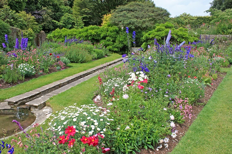 - Rittersporn: Hochwachsende, stattliche Blüten in Blau, Violett oder Weiß, die vertikale Struktur ins Beet bringen.