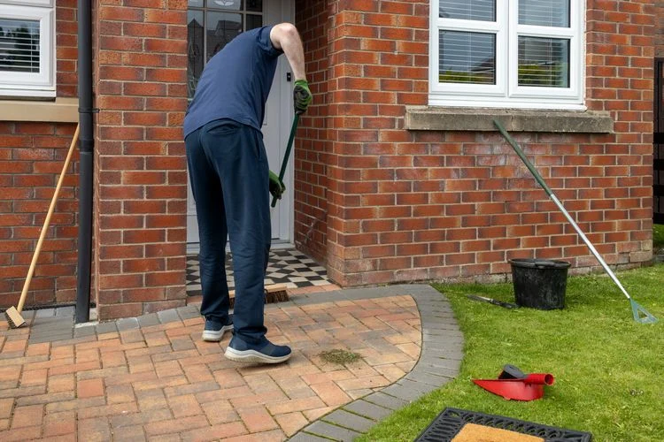 Um zu verhindern, dass sich Moos, Algen und Flechten in den Zwischenräumen der Pflastersteine bilden, füllen Sie diese nach der Reinigung mit Polymersand auf. Er ist robust genug, um einer Hochdruckreinigung standzuhalten.