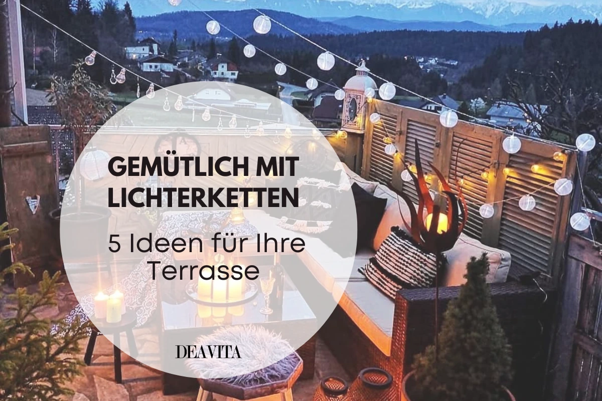 Entdecken Sie 5 Ideen, wie Sie Ihre Terrasse mit Lichterketten in eine gemütliche Wohlfühloase verwandeln – kreativ, romantisch & nachhaltig.