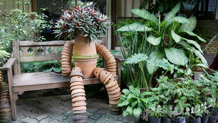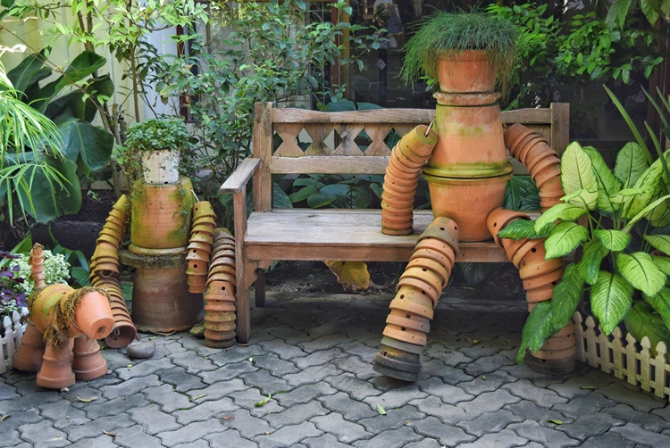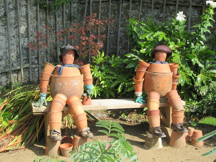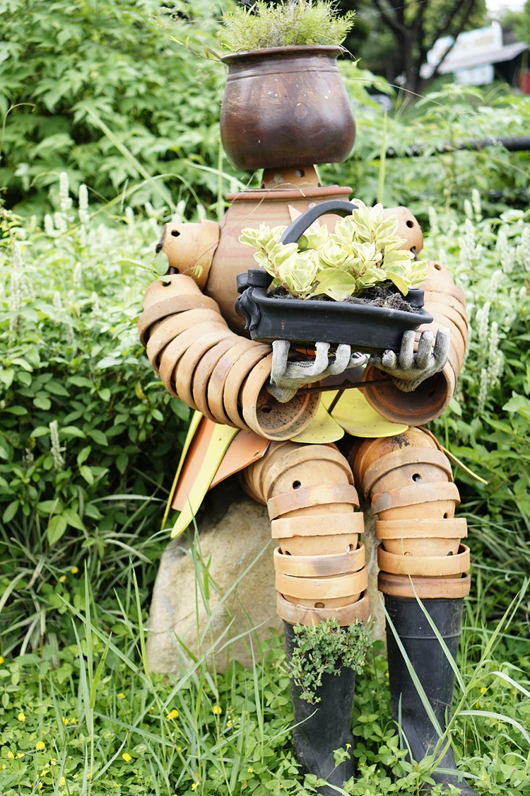 Der Gärtner aus Tontöpfen – Eine lustige Gartenfigur mit Harke