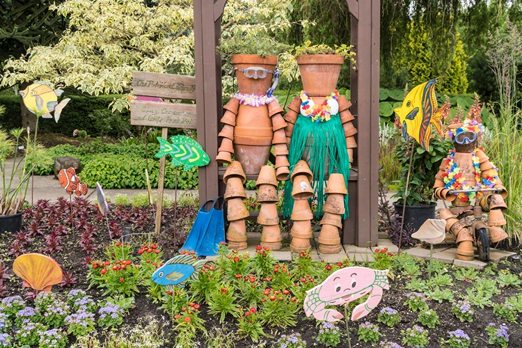 Wer sagt eigentlich, dass Tontöpfe nur still in der Ecke stehen und Blumen halten dürfen? Mit ein bisschen Fantasie und Geschick verwandeln sich die unscheinbaren Keramikfreunde in freche Gärtner, sonnenhungrige Hawaii-Urlauber, schrullige Vogelscheuchen oder ganze Familien samt vierpfotigem Anhang! Ob mit Flossen, Blumenketten, Federgras-Frisur oder Gartengerät – die Männchen aus Töpfen haben ordentlich Charakter und bringen jede Menge Charme in den Garten.
