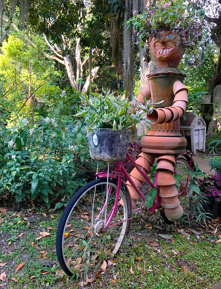 Tontopfmännchen auf einem alten Fahrrad