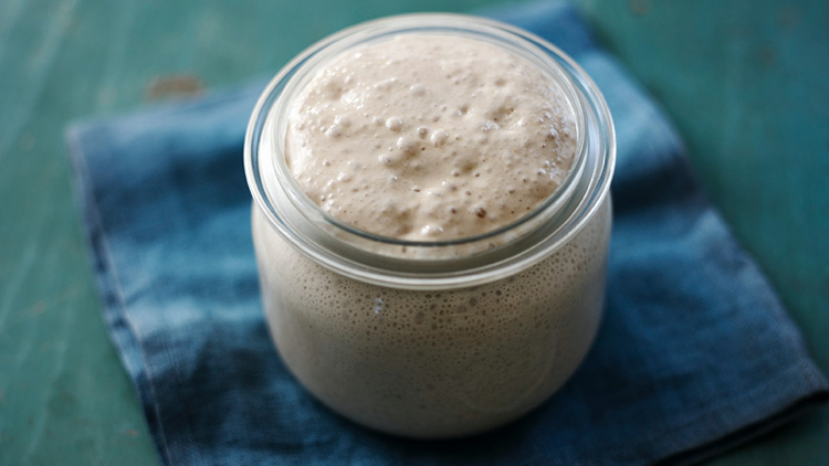 Der Starter muss zunächst über mehrere Tage fermentieren, wobei er jeden Tag mit Mehl und Wasser gefüttert wird. Dieser Vorgang dauert ungefähr fünf Tage, bis die lebenden Hefen und Milchsäurebakterien im Mehl richtig gesäuert sind. Der einfache, aber lange Gärungsvorgang verleiht dem Sauerteig Brot eine einzigartige Textur und eine schöne Form.