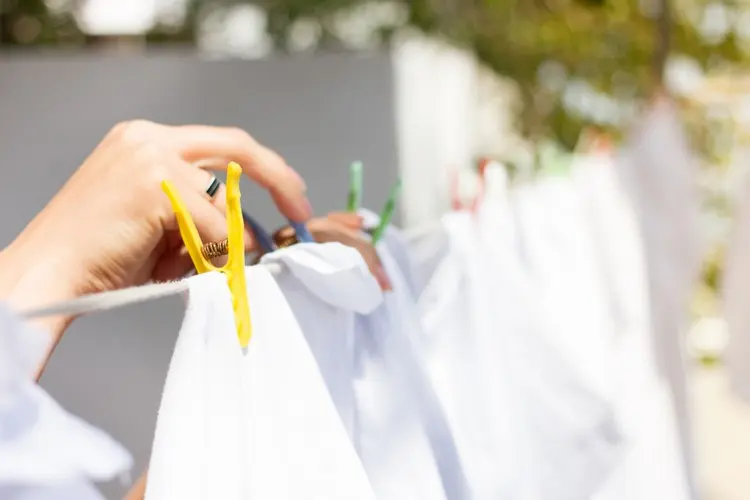 Der Sonnentrick ist eher effektiv, wenn Sie das betroffene Kleidungsstück bereits gewaschen und festgestellt haben, dass der Fleck immer noch zu erkennen ist. Legen Sie es gleich nach dem Waschen zum Trocknen in die Sonne – die UV-Strahlen bauen das Beta-Carotin nach und nach ab.