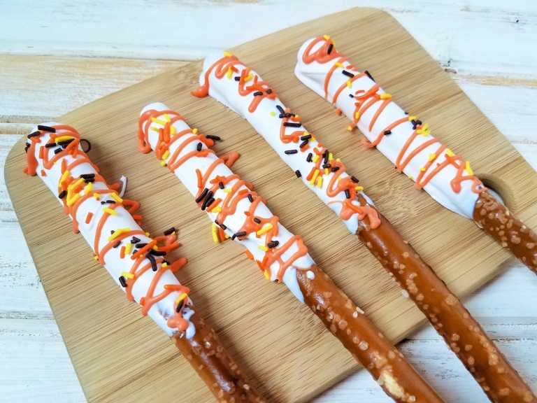 Salzstangen mit Schokoglasur selber machen: Rezepte für Mitgebsel zu Halloween