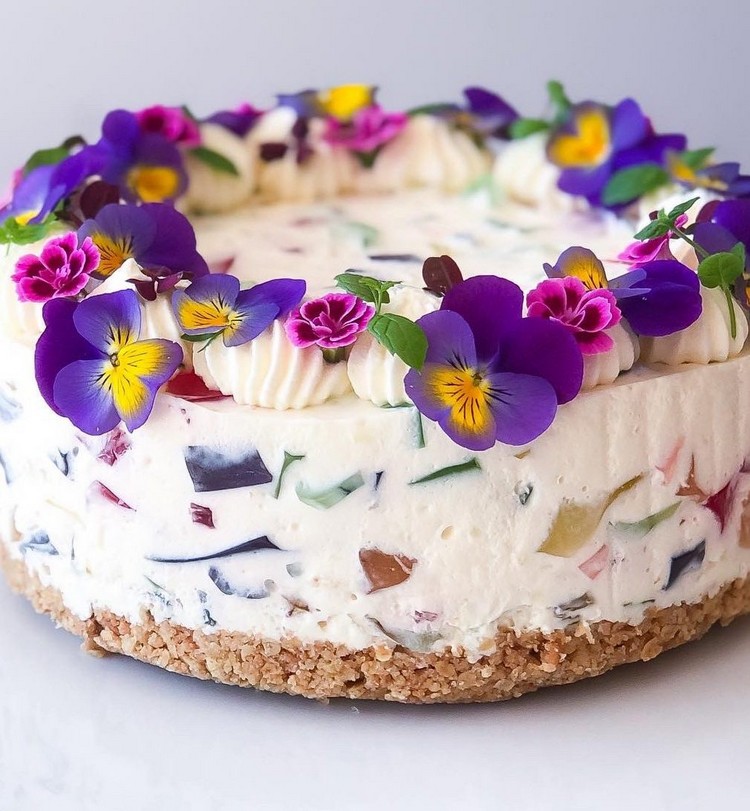 Cheesecake mal anders mit bunten Stückchen aus Götterspeise