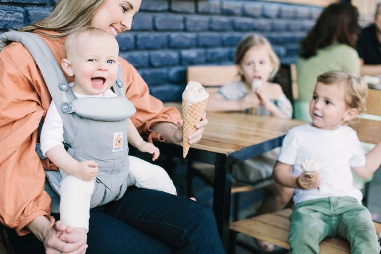 Vorsicht! Nicht alle Tragehilfen sind auch wirklich ergonomisch. Achten Sie also vor dem Kauf unbedingt darauf, dass das Baby in der richtigen Position liegt. Wir erinnern, dass sich die Beine in einer angehockten Position befinden und leicht gespreizt sein sollten. Der Rücken darf wiederum keinesfalls gestreckt werden.