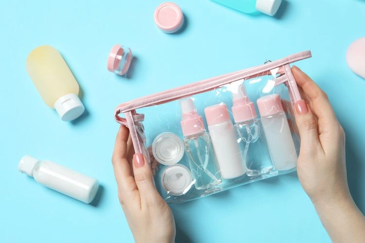 Verwenden Sie eine durchsichtige Kosmetiktasche