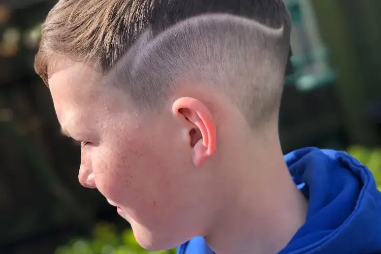 Ein sehr moderner Look mit kurzem, strukturiertem Deckhaar und extrem kurz ausrasierten Seiten. Passt besonders gut zu Jungs mit dickerem Haar, wirkt lässig und ist leicht zu stylen – einfach etwas Mattpaste oder Styling-Puder einarbeiten.