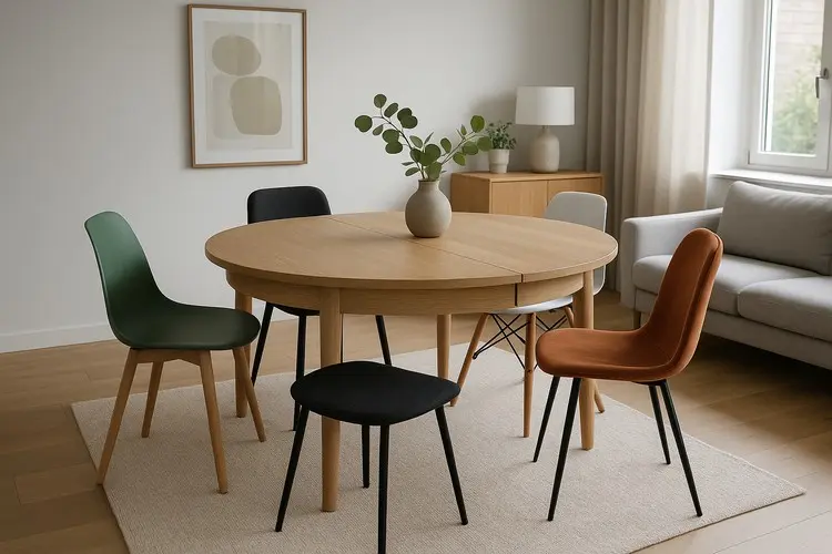 Runde, ausziehbare Tische mit Stühlen im Mix & Match Stil kombinieren
