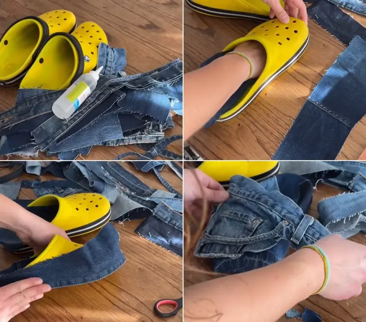 Klar, Sie könnten alte Crocs wieder einfach nur besprühen, jedoch würde sich die Farbe durch die Reibungen beim Tragen schnell wieder abnutzen. Es ist also nicht sehr sinnvoll. Stattdessen können Sie sie nutzen, um auch alte Kleidung zu verwerten – Jeans, beispielsweise.