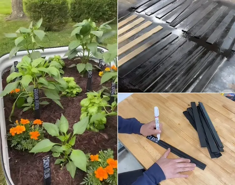 Gartenstecker basteln aus Leisten und Tafelfarbe und mit Kreidemarkern beschriften