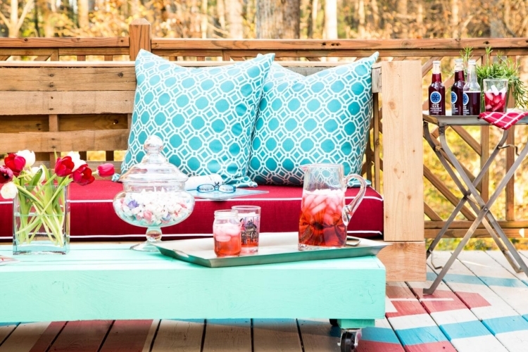 Sind die Europaletten gebraucht, dann können diese zum Einsatz im Außenbereich kommen. Die bequemen Lounge-Möbel können problemlos Regen und Schnee trotzen und sind meistens gegen Insekten behandelt. Deswegen sind sie nicht nur eine preisgünstige, sondern auch praktische Alternative zu gewöhnlichen Gartenmöbeln aus Holz, die im Winter in der Garage aufgelagert werden müssen. Umso mehr – Palettenmöbel lassen sich in fröhlichen Farben streichen oder lackieren.