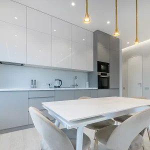 Für den DIY Tiffany-Spiegel brauchen Sie einen normalen Spiegel in beliebiger Größe, einen geeigneten Glasschneider, ein Stück selbstklebende Folie (am besten in metallischer Farbe wie Messing oder Silber, matt), einen Filz- und einen Bleistift, eventuell einen Glasreiniger, ein Lineal, Schneideöl und Handschuhe. Damit das Endergebnis richtig gelingt, empfehlen wir vorher eine Skizze 1:1 zu zeichnen. Mit dem Filzstift und dem Lineal markieren Sie den Schnitt auf dem Glas. Nun tauchen Sie die Spitze des Glasschneiders ins Schneideöl und tragen Sie ein bisschen davon auf die Schnittstellen. Dann legen Sie das Lineal an die markierte Linie und schneiden Sie daran entlang. Bedenken Sie, dass Sie den Glasschneider nur einmal ohne Unterbrechung und unter gleichmäßigem Druck ziehen müssen. Anschließend legen Sie den Spiegel an den Rand der Arbeitsfläche oder auf ein erhöhtes Objekt, z.B. ein Buch oder eine Platte, und lassen Sie die Kante, die Sie abschneiden wollen, überstehen. Nun klopfen Sie vorsichtig darauf, bis sie abfällt. Zum Schluss schleifen Sie ein bisschen die scharfen Kanten ab.