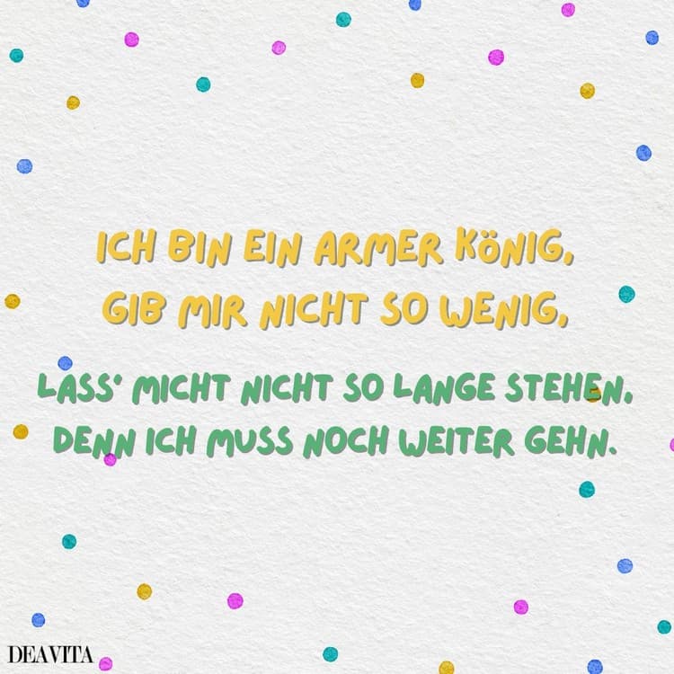 Eine coole Spielidee wäre auch, die Verse auf Zettelchen zu schreiben und beispielsweise in einen Hut zu legen (wie Lose). Jeder zieht einen Zettel heraus und muss den jeweiligen Spruch so witzig, wie möglich, vorlesen. Wer schafft es, die anderen zum Lachen zu bringen?