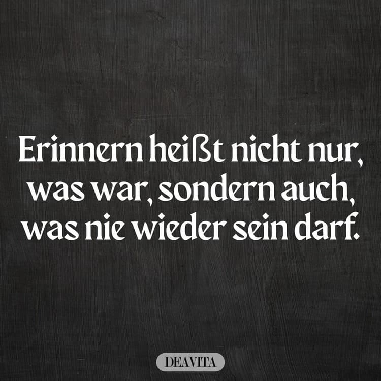 Senden Sie ein paar Zitate und Weisheiten an Ihre Freunde und Verwandte oder stellen Sie einen beliebigen Spruch in Ihren Status, um an die Vergangenheit zu erinnern und zum Denken anzuregen. Erinnern Sie Ihre Bekannten an die furchtbaren Zeiten, um die Wiederholung zu verhindern – gerne auch außerhalb des eigentlichen Tags der Befreiung.