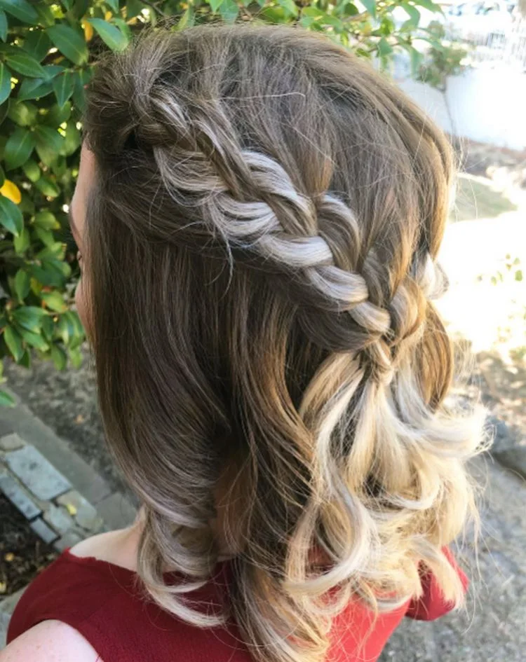 Zöpfe können, ähnlich wie bei langem Haar, eine großartige Möglichkeit sein, kurzen oder halblangen Haaren Stil und Funktionalität zu verleihen. Ein halb hochgesteckter, halb heruntergezogener Kronenzopf sieht bei kurzen Haaren toll aus, weil er sehr elegant ist.