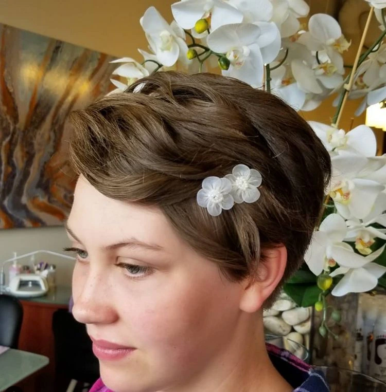 Der Pixie Cut ist eine der vielseitigsten und stilvollsten Frisuren überhaupt. Denken Sie darüber nach, dekorative Haarspangen oder andere Verzierungen zu verwenden, um Ihren Look für den Schulabschluss aufzupeppen. In Kombination mit einem modernen Kleid können diese Accessoires Ihren Stil wirklich aufwerten.