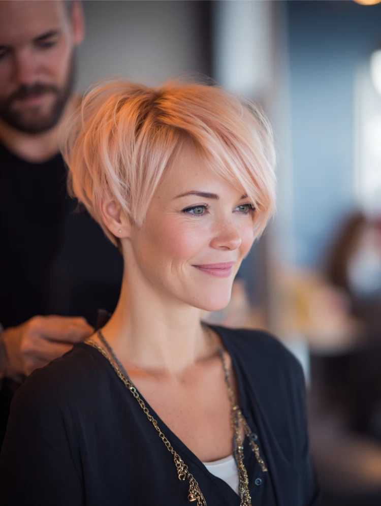 Sie wünschen sich einen Look, der frisch, frech und dennoch elegant wirkt? Dann ist der Bixie Cut 2025 in Blond Ihre Frisur! Er lässt sich vielseitig stylen, passt zu vielen Gesichtsformen und setzt Ihre Persönlichkeit perfekt in Szene. Ob platinblond, butterweich oder mit Balayage – mit dem richtigen Ton wird dieser Haarschnitt zum echten Signature-Look.