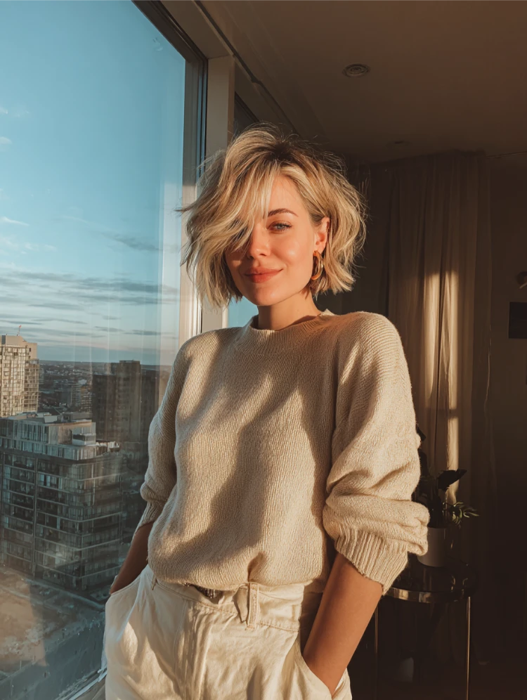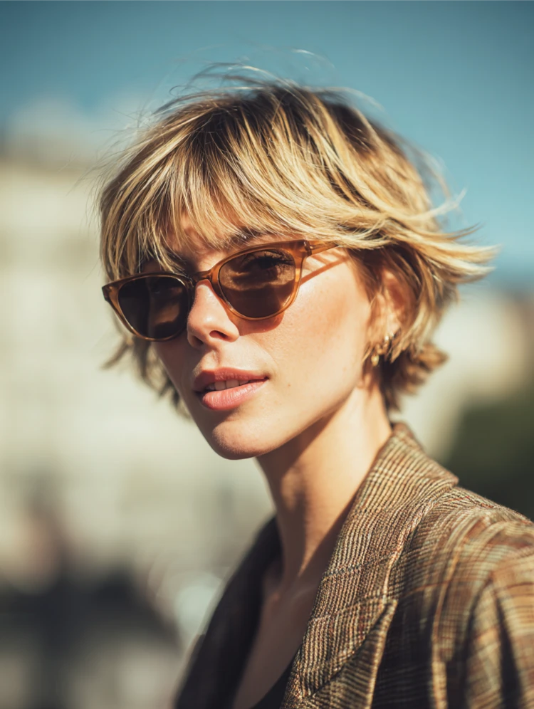 Der Bixie funktioniert in jeder Haarfarbe, aber in Blond wird er 2025 zum absoluten Hingucker. Warum? Weil helle Nuancen die Struktur und Bewegung des Schnitts betonen und gleichzeitig frisch und jugendlich wirken – perfekt für kurze Haare!