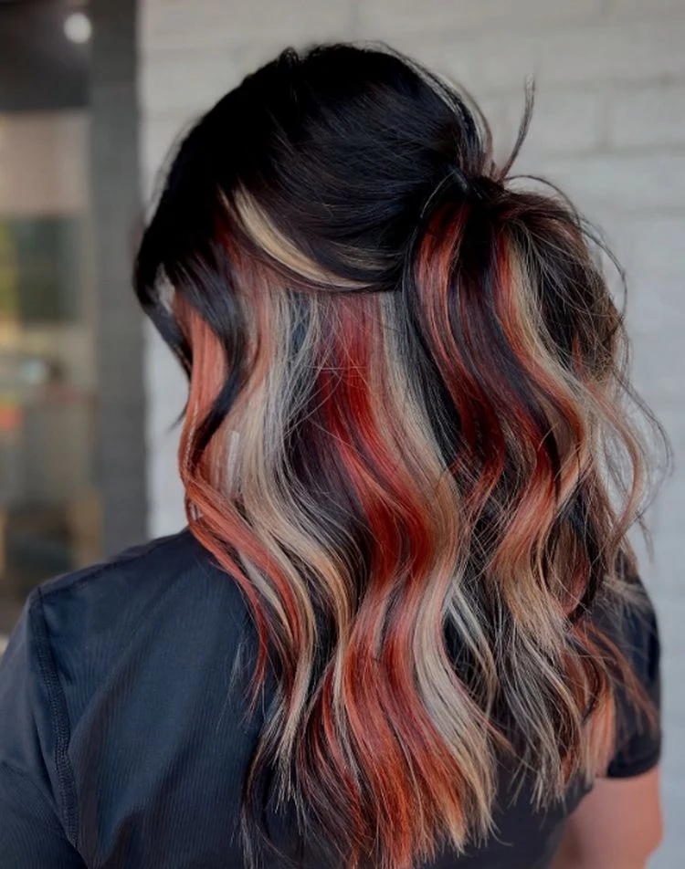 Calico-Katzen sind die Inspiration für den Namen dieser Frisur. Warme Rot-, Schwarz- und Weißtöne sind typisch für das Fell dieser entzückenden Katzen. Eine solche Farbharmonie wird derzeit auf geniale Weise auf echtes Haar übertragen. Im Gegensatz dazu bevorzugt Calico Hair kräftige Kontraste gegenüber subtilen wie Ombré oder Balayage. Hier sind die Farbpartien so gestaltet, dass sie wie kleine Kunstwerke wirken, die nebeneinander platziert sind und klare Grenzen voneinander haben. Warme Kupfer- oder Rottöne, verschiedene Blondnuancen und tiefe Brauntöne oder Schwarztöne sind dabei entscheidend.