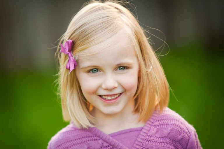Ein gelungener Haarschnitt soll außerdem noch die optischen Vorzüge betonen. Einem Kind mit kantigem Gesicht stehen zum Beispiel Stufenschnitte besonders gut, denn sie können die Gesichtszüge ausgleichen. Mädchen mit herzförmigen Gesichtern können ihre glatten Haare ebenfalls gestuft tragen, oder sich für eine Frisur mit Pony mit ausgefransten Spitzen entscheiden. Dreieckigen und langen Gesichtern steht ein Long Bob mit Seitenvolumen besonders gut.