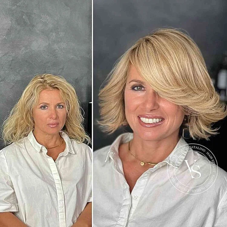 3 Pony-Frisuren ab 50 – ein schräger Pony mit Bob vereint Eleganz mit Flexibilität