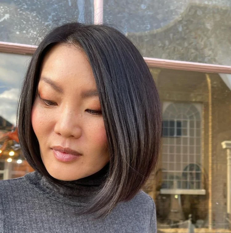 Olya Iudina, Stylistin bei IGK NYC, fügt hinzu: „Er gehört auch zu den kürzeren, stumpferen Bob-Frisuren, ist hinten etwas höher und hat nicht viel Textur und keine Stufen.“