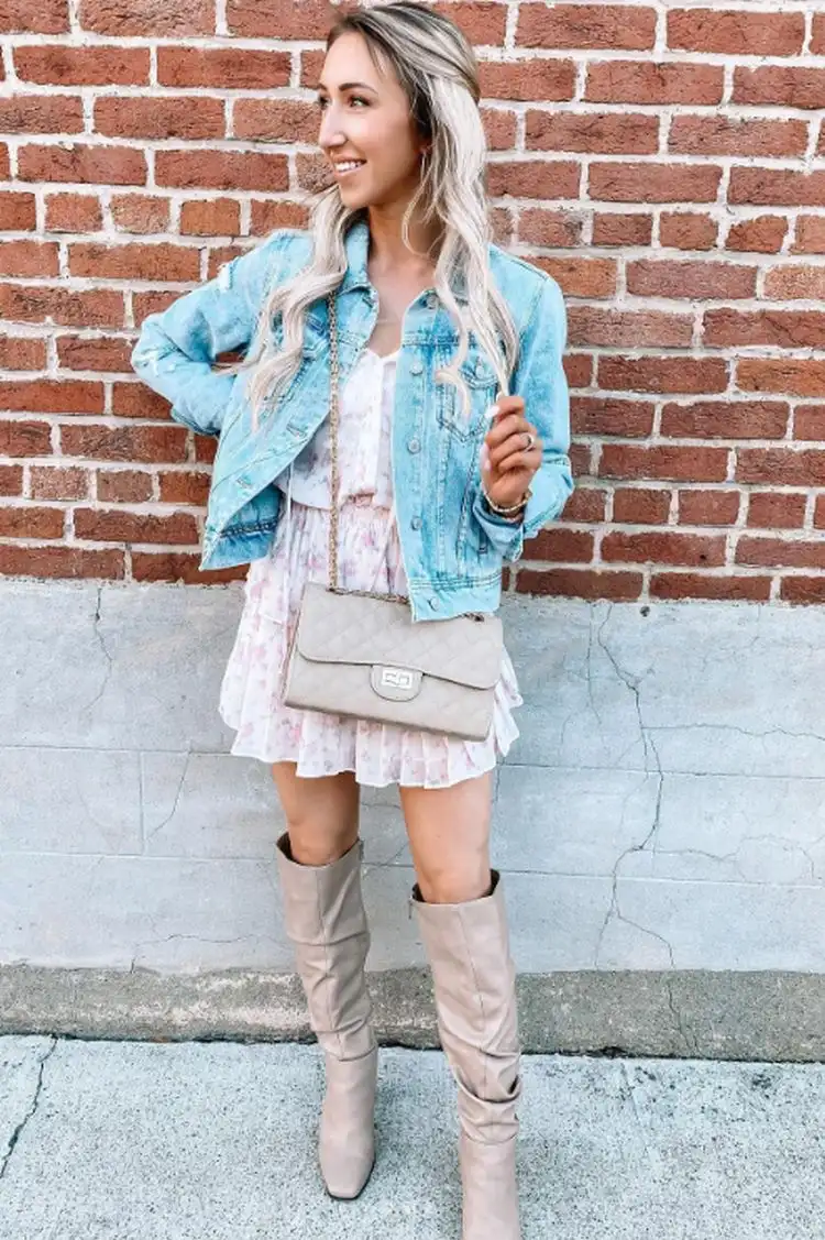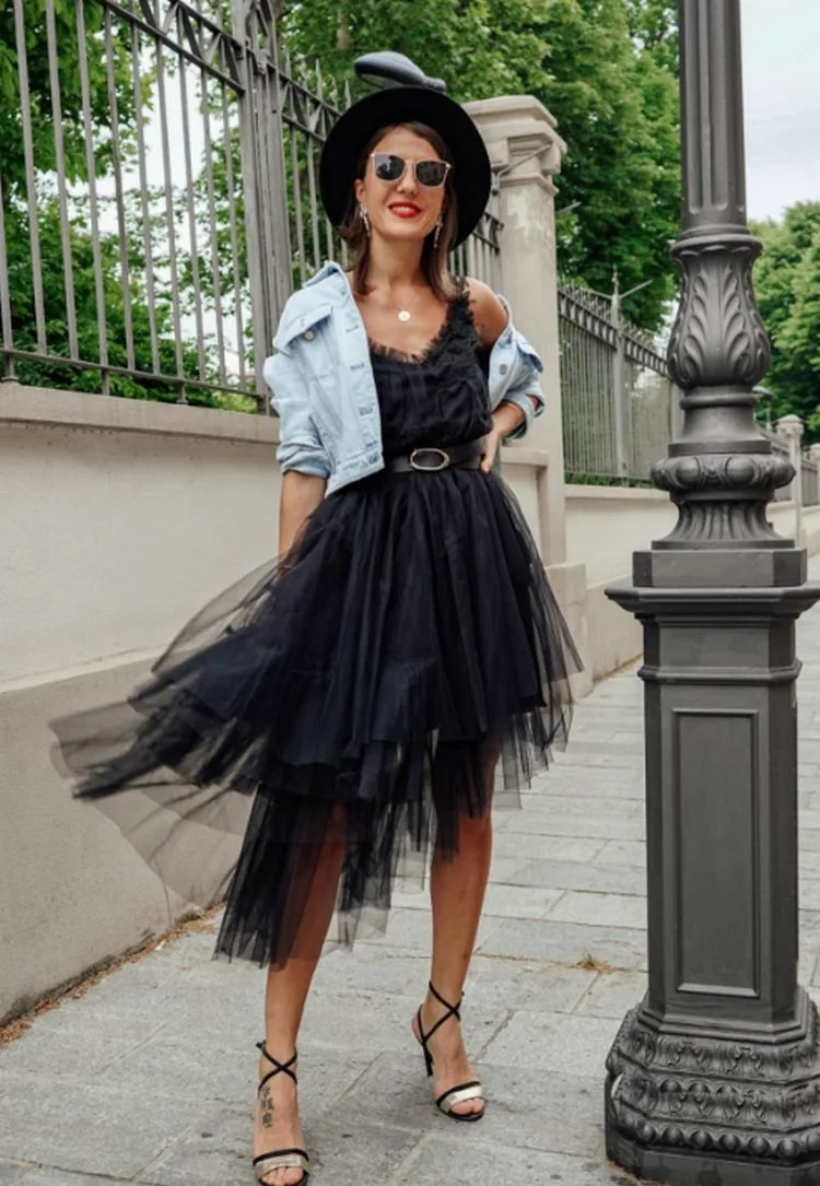 Hier wird es richtig spannend! Können Sie sich eine kurze Jeansjacke über einem fließenden Midikleid vorstellen? Sehr schick! So können Sie geschickt verschiedene Elemente mischen, um einen Look zu kreieren, der sowohl lässig als auch stilvoll ist.